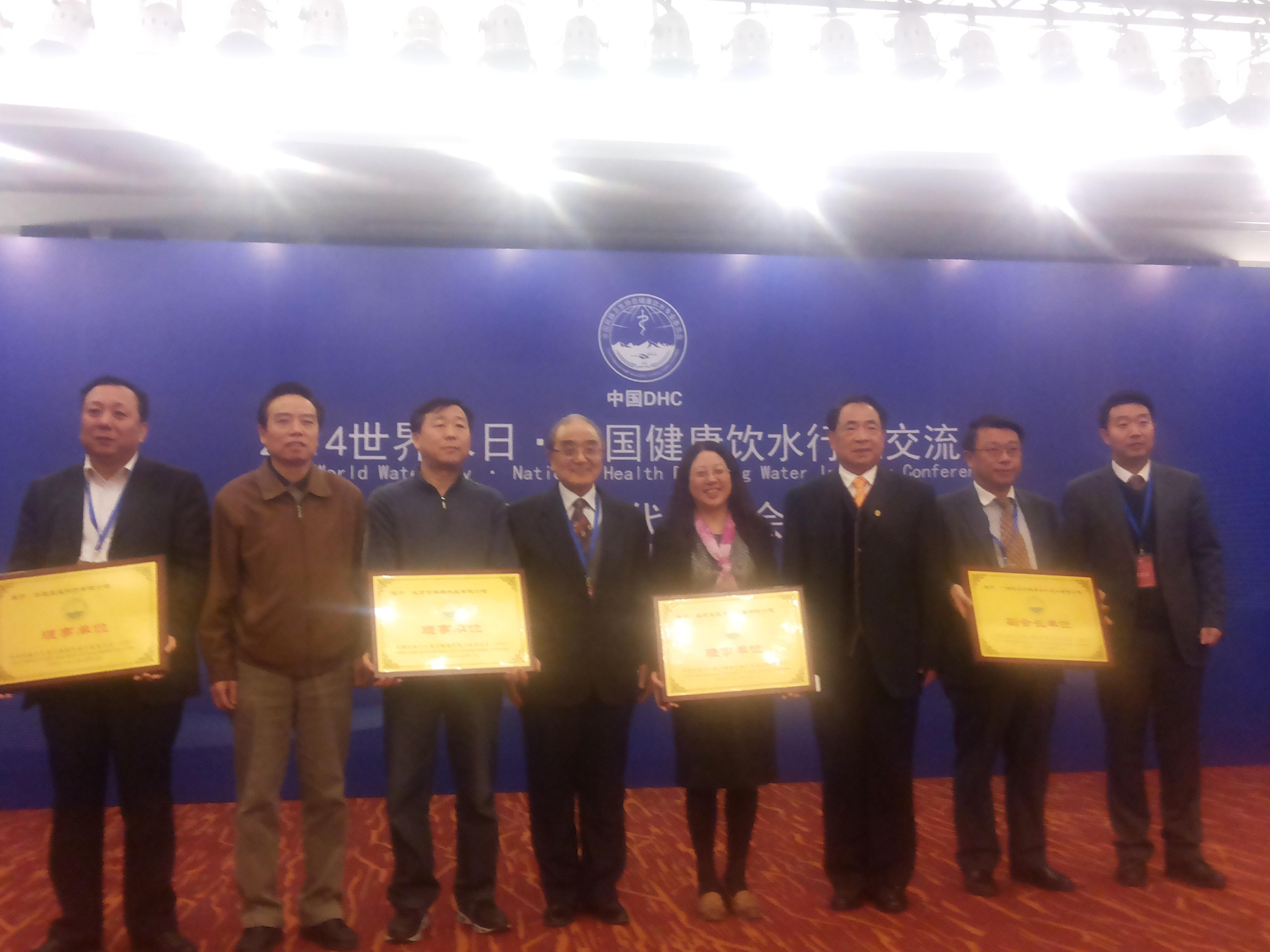 2014年3月22日,由中國民族衛(wèi)生協(xié)會健康飲水專業(yè)委員會主辦的2014世界水日—全國健康飲水行業(yè)交流會暨會員代表大會在北京世紀(jì)金源大飯店順利召開。 會議開始時(shí),首先由中國民族衛(wèi)生協(xié)會常務(wù)副會長兼秘書長,原中紀(jì)委、監(jiān)察部駐衛(wèi)生醫(yī)藥部門紀(jì)檢組 副組長、監(jiān)察局局長郁德水致辭并發(fā)表講話,并受民族衛(wèi)生協(xié)會會長,全國政協(xié)常委、原國家民族事務(wù)委員會主任、中央統(tǒng)戰(zhàn)部副部長李德洙的委托,帶來了對本次會議順利召開的祝賀。隨后,健康飲水專業(yè)委員會會長金日光,秘書長馬錦亞依次發(fā)表講話,秘書長馬錦亞還對健康飲水專業(yè)委員會2013年度的工作做出了工作總結(jié)及2014年度的工作報(bào)告。北京愛生科技發(fā)展有限公司作為健康飲水專業(yè)委員會的理事會員接受了協(xié)會授予的銅牌。張瓊總經(jīng)理代表愛生公司上臺領(lǐng)獎并與協(xié)會領(lǐng)導(dǎo)合影留念。