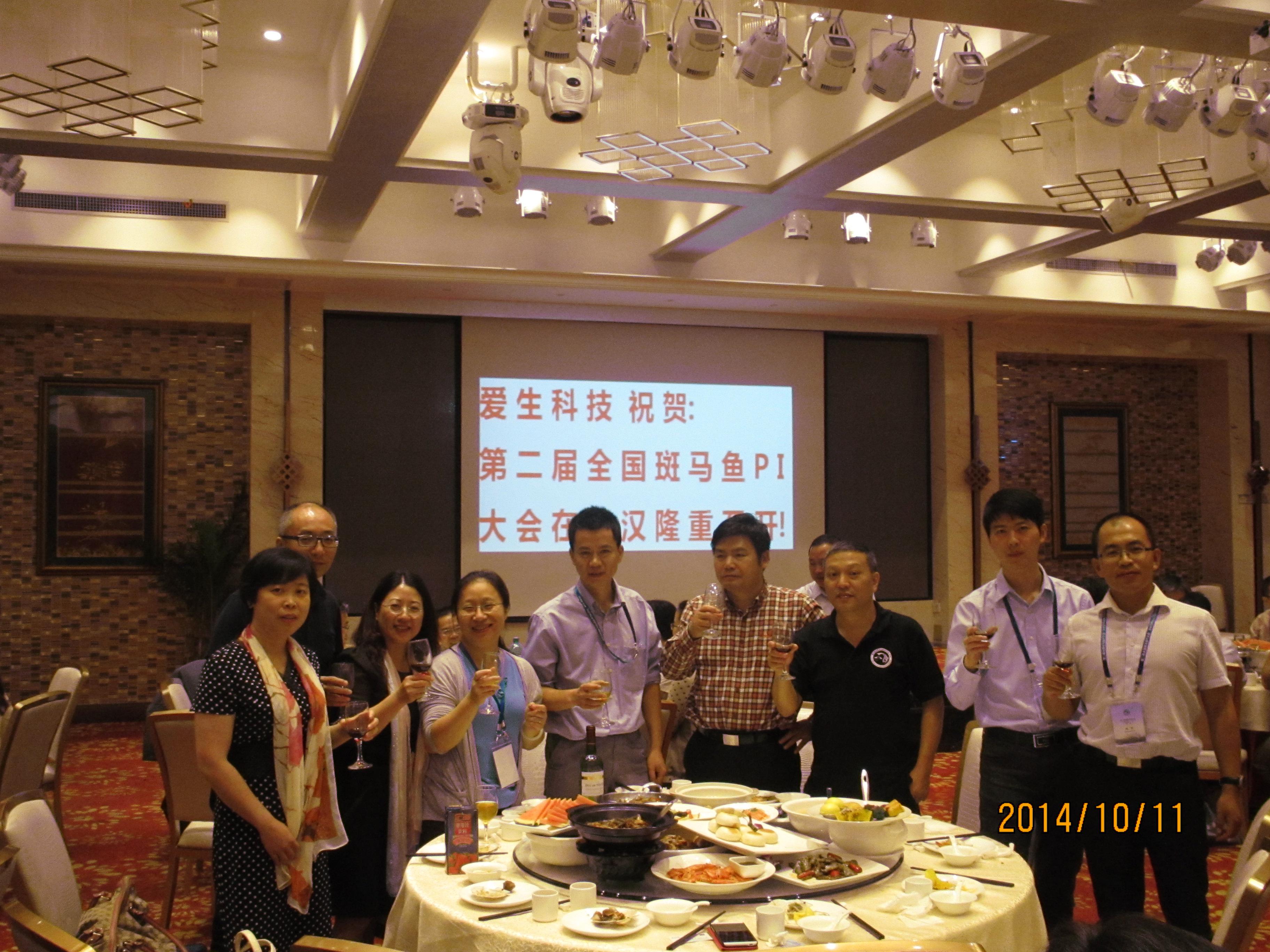 2014年10月10日至13日,斑馬魚1號染色體全基因敲除計劃結(jié)題會暨第二屆全國斑馬魚PI大會在武漢市洪山賓館順利召開。中科院水生生物研究所所長趙進(jìn)東院士、國家自然科學(xué)基金委生命科學(xué)部谷瑞生處長、中國科學(xué)院科技促進(jìn)發(fā)展局副局長段子淵、中科院水生所朱作言院士、中科院動物所孟安明院士、國家斑馬魚資源中心主任孫永華等領(lǐng)導(dǎo)主席會議,北京愛生科技發(fā)展有限公司總經(jīng)理張瓊以及來自中國大陸、香港、臺灣和歐美等地的將近150位斑馬魚科研實驗室主要負(fù)責(zé)人(PI)參加了大會。北京愛生科技發(fā)展有限公司作為第二屆全國斑馬魚PI會議的主要贊助商參加了本次斑馬魚1號染色體全基因敲除計劃結(jié)題會。