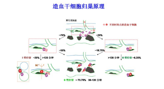 研究人員在國(guó)際上率先采用可變色熒光蛋白建立了造血干細(xì)胞標(biāo)記系統(tǒng),在高分辨率共聚焦熒光顯微鏡下,建立了造血干細(xì)胞長(zhǎng)時(shí)程活體觀察追蹤方案,從宏觀到微觀,生動(dòng)地呈現(xiàn)了造血干細(xì)胞從誕生到歸巢的全過(guò)程。經(jīng)過(guò)對(duì)大規(guī)模長(zhǎng)時(shí)程活體成像的統(tǒng)計(jì)分析,發(fā)現(xiàn)了造血干細(xì)胞歸巢的時(shí)空規(guī)律及“熱點(diǎn)區(qū)域”,并結(jié)合精細(xì)成像和三維重構(gòu)技術(shù),首次揭示了體內(nèi)造血干細(xì)胞歸巢微環(huán)境的獨(dú)特微血管結(jié)構(gòu)。