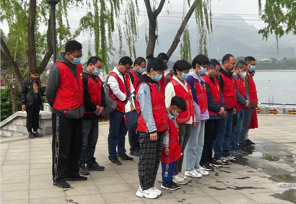 在北京雁棲湖新時期黨員教育綜合實踐基地,全體同志首先參觀了金燈山英烈雕像,聆聽英烈事跡,并向革命先烈敬獻花籃,默哀致敬。