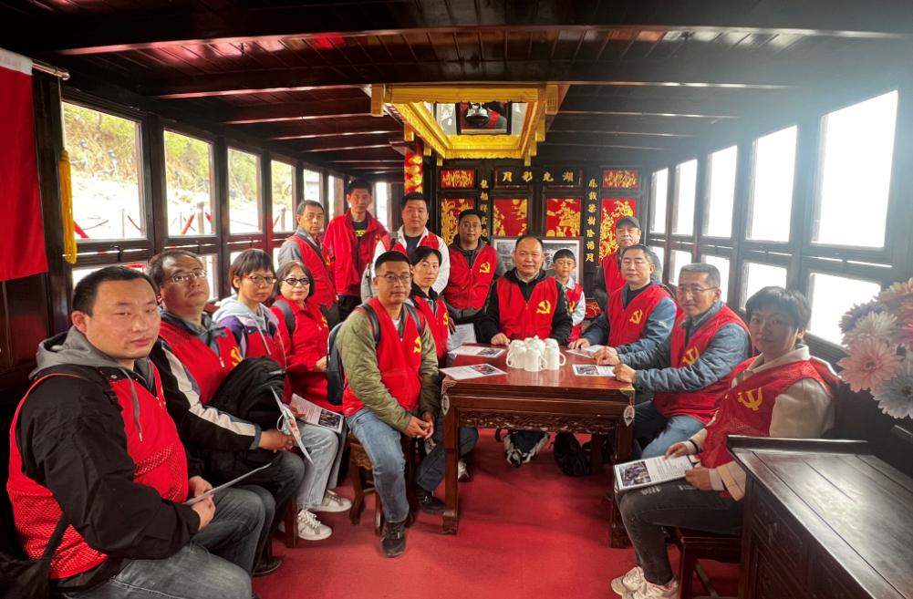 在山頂,標(biāo)志著偉大抗疫精神的雕塑旁,全體黨員懷著無比自豪的心情重溫入黨誓詞。