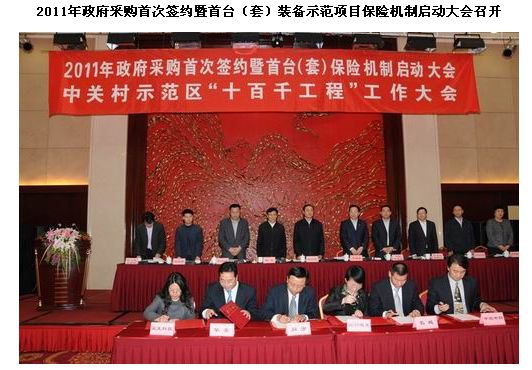 為更好地為企業(yè)開(kāi)展技術(shù)創(chuàng)新和市場(chǎng)拓展保駕護(hù)航,有效地加快新技術(shù)新產(chǎn)品進(jìn)入市場(chǎng)的步伐,2010年,中國(guó)保監(jiān)會(huì)和中關(guān)村管委會(huì)積極探索,創(chuàng)新性地推出了首臺(tái)(套)裝備示范項(xiàng)目保險(xiǎn)補(bǔ)償機(jī)制。本次大會(huì)的召開(kāi),標(biāo)志著政府采購(gòu)首臺(tái)(套)裝備示范項(xiàng)目保險(xiǎn)補(bǔ)償機(jī)制正式啟動(dòng)實(shí)施。啟動(dòng)大會(huì)上,同方股份有限公司等4家中關(guān)村企業(yè)與保險(xiǎn)機(jī)構(gòu)簽訂了首臺(tái)(套)重大技術(shù)裝備示范項(xiàng)目保險(xiǎn)合同,參保企業(yè)將得到政府給予的最高不超過(guò)80%的保費(fèi)補(bǔ)貼。